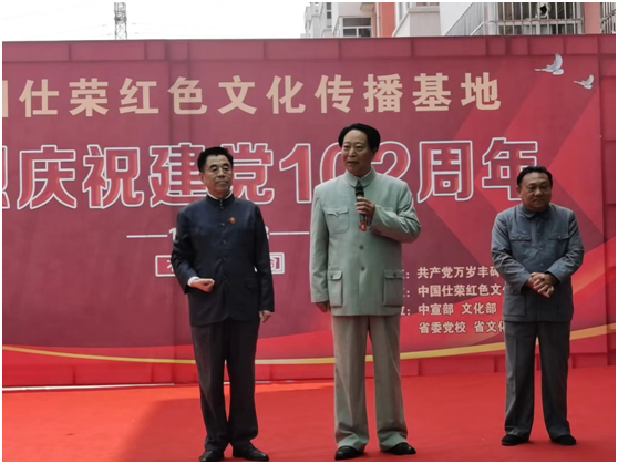 庆祝活动上,红歌高唱,《唱支山歌给党听》《把一切献给党》《毛主席话儿记心上》《我爱你中国》唱出了对党的深情,对毛主席的崇敬,对祖国的挚爱;诗朗诵《七月的赞歌》、新疆舞、男女二重唱、萨克斯伴奏唱给观众带来了美的享受,表达了对党的热爱。特型演员、毛泽东扮演者向东、周恩来扮演者孙福堂、邓小平扮演者顾拥军、蒋介石扮演者陈钊、宋美龄扮演者秦红霞上台表演节目与大家合影留念。著名画家、平恩画院院长贾运华向红色基地捐赠了自己创作的作品,著名红色收藏家、山东济宁井冈燎原博物馆馆长王连福向红色基地捐献了红色藏品,著名书画家高山、贾运华等分别向中国仕荣红色文化传播基地捐赠了书画作品。庆祝活动在全体党员上台举起右拳,在秦红霞带领下,重温入党誓词声中落幕。