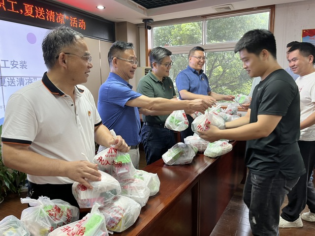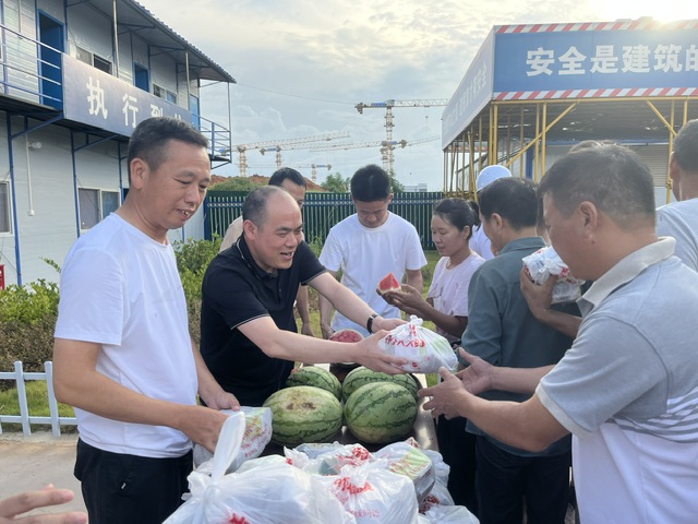 公司党委书记、董事长余恕保,党委副书记、总经理黄久林,党委副书记、董事、工会主席丁立民,党委委员、纪委书记黄磊,党委委员、董事、财务总监雷华甫、副总经理黎晓勇等一行先后为江西省赣州市洋田公寓三期项目、南昌市青山湖区城市水环境治理项目的一线职工送上西瓜、药品、毛巾、香皂等防暑降温物资400余份。