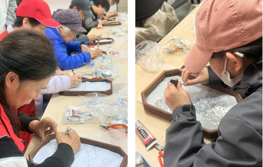 在整个制作过程中,参与者之间自然而然地形成了互助共学、经验共享的温馨氛围。社区里热情的李阿姨虚心向年轻同伴请教铜丝弯折粘贴的角度与技巧,来自附近企业的员工小王则主动帮助邻座的居民调和颜料的浓稠度与色彩。现场探讨声、鼓励声与欢笑声交织不绝,邻里情谊在一次次交流与合作中悄然升温。大家纷纷表示,这方茶盘远不止于一件日常茶具,它更承载着手工制作的专注时光、邻里互动的温暖记忆,以及内心深处对“事事如意”幸福未来的真诚期许。