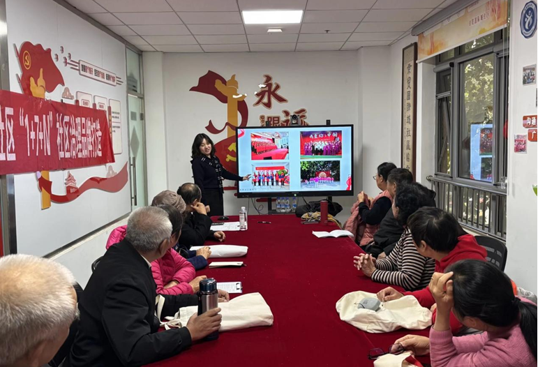 工作人员从“基础条件、学习宣传、活动成效”三个维度介绍组织规范的标准,带领成员代表协商讨论组织规范要求,协商出组织标识为音符+社区元素,队标和队旗颜色为红色、橙色渐变色,体现愉悦欢快的寓意。合唱队伍也提出了目前练习缺乏专业指导老师、没有经费支持持续打印歌谱、缺乏音响设备等影响队伍持续发展的问题,希望纳入社区工作计划为组织发展设备和专家资源的提供支持。