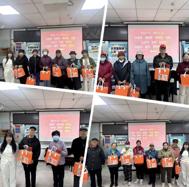 最期待的“积分兑礼”环节到来了。工作人员提前将志愿者参与服务的次数累计积分,线下统计、线上公示,确保公平。当名字被逐一念出,掌声像浪潮般此起彼伏,社区工作人员代表为积分前40名的志愿者颁发礼品,鼓励大家持续参与社区志愿服务。