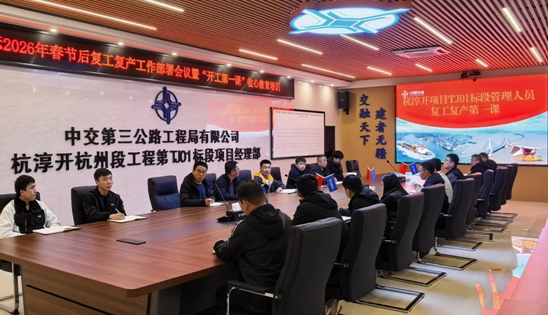 安全教育网浙江(记者 常魁星 通讯员 张波 林祥)马年启新程,奋战正当时。新春伊始,中交三公局杭淳开高速公路杭州段土建1标项目施工现场人员吹响集结号,机械设备整装待发,处处涌动着复工复产的热潮。项目部严格遵照指挥部复工复产工作部署,全面落实“六个一”安全要求,坚守“五不复工”硬性底线,以最快速度、最实举措按下施工“快进键”,全体参建人员以昂扬斗志、饱满热情投身建设一线,全力向着年度目标任务发起冲击。