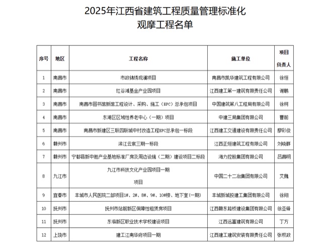 安全教育网江西(通讯员:巫应彬)9月26日,在江西省住房和城乡建设厅主办的“2025年江西省建筑工程质量管理标准化观摩会”上,江西建工交通建设有限责任公司(简称:“江西建工交建”)承建的南昌市新建区三联四联城中村改造项目EPC总承包一标段作为分会场,集中展示了智能建造与新质生产力应用、全过程精细化质量管理方面的创新成果,为“全面推动建筑工程品质提升,着力建设人民群众满意的‘好房子’”提供了鲜活的实践范例。
