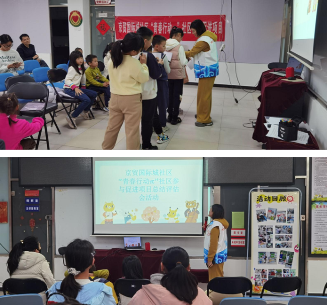通讯员 通讯员 刘彦彤 )10月25日,北京市通州区京贸国际城社区举办了“青春行动π”社区参与促进项目总结评估活动,评估青少年社区参与成效,回顾青少年社区服务情况,分享参与感受和收获。活动吸引40位青少年及家长参加。