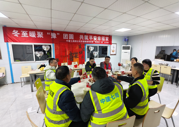 冬至日,中建七局四公司鹤壁京造新城项目党支部和工会组织的包饺子活动,职工一起包饺子、过集体生日,并将安全承诺写进特制的“饺子形”承诺卡,让传统佳节充满了安全与温情。是中建七局四公司践行人文关怀、构建和谐工地的一 次生动实践,展现了现代建筑企业不仅有“硬实力”,更有“软温度”。