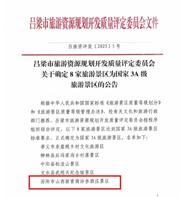 安全教育网山西 2025年12月30日,山西新晋商酒庄集团迎来发展双里程碑:山西新晋商汾杏酒庄景区依据国家《旅游景区质量等级的划分与评定》标准,经严格评审,正式获评国家3A级旅游景区,所承载的文化建设成果——“新晋商文化传承与创新实践——汾杏酒庄文化景区IP打造之路”,经中国酒业协会审议,入选“中国酒业文化IP”。这标志着新晋商汾杏酒庄不仅在旅游品质上获得国家级认可,其独具特色的文化打造模式也与汾酒、茅台、五粮液等众多行业名企一同获得了酒业权威机构的文化价值肯定。